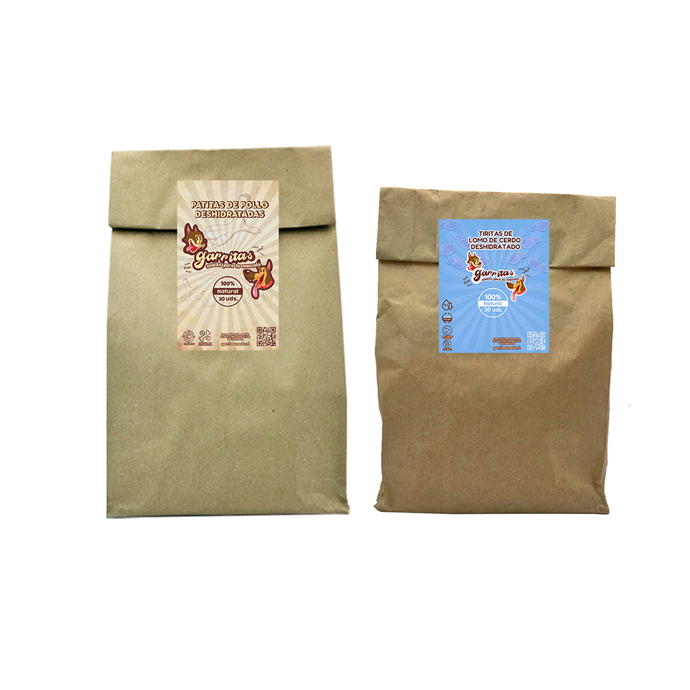 Incluye: Recarga de Tiritas de pechuga de pollo de 30 unidades o de Tiritas de lomo de cerdo 30 unidades y de Patitas de pollo de 30 unidades