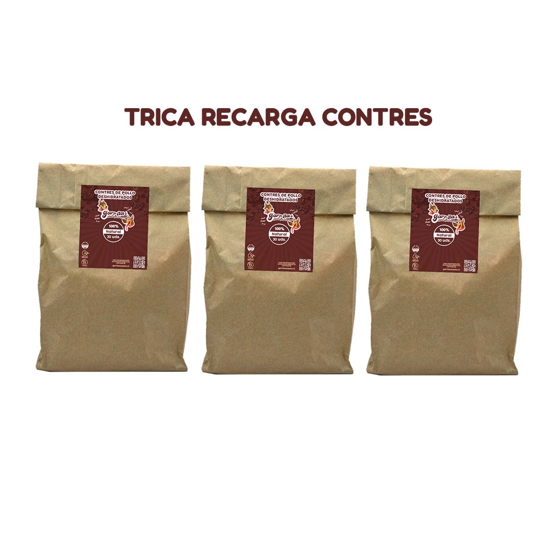 Incluye: 3 recargas de contres de pollo de 30 unidades
