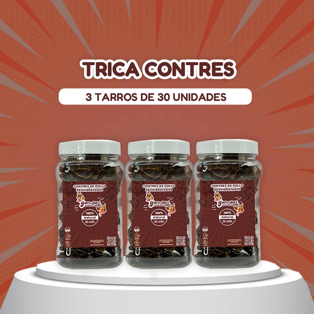 Incluye: 3 Tarros de contres de pollo de 30 unidades