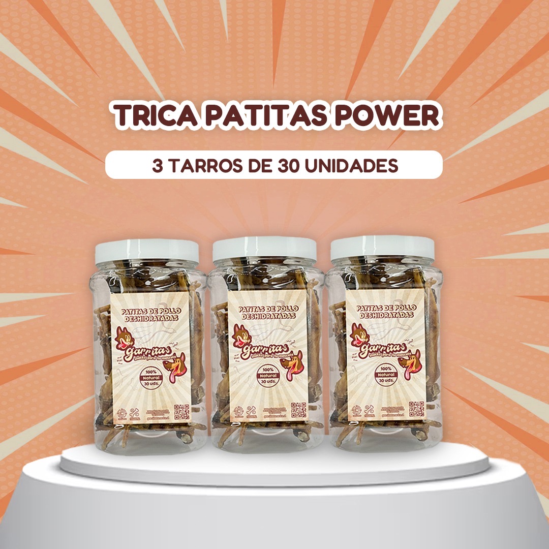 Incluye: 3 Tarros de patas de pollo de 30 unidades